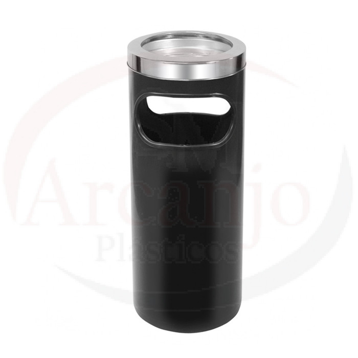 O Cinzeiro Lixeira RP tem um design texturizado com bandeja e aro em aço inox